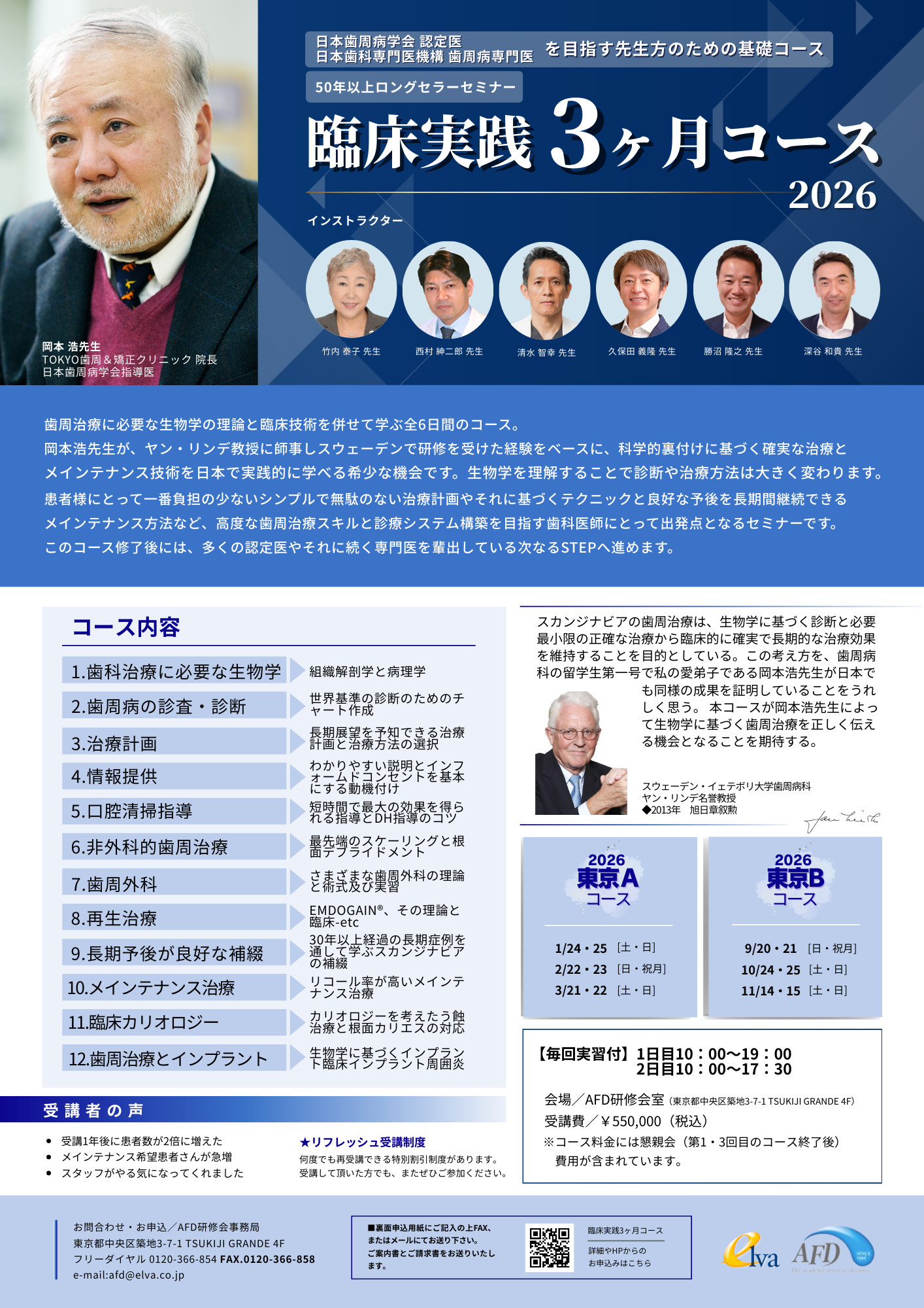 この考え方を歯周病科の留学生第一号で私の愛弟子である岡本浩先生が日本でも同様の成果を証明していることをうれしく思う。 本コースが岡本浩先生によって生物学に基づく歯周治療を正しく伝える機会となることを期待する。