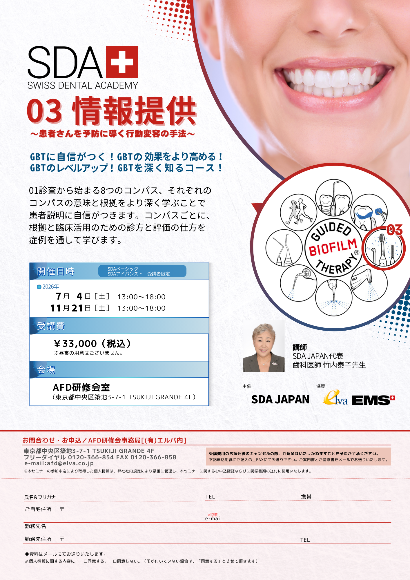 本コースではGBT効果を高めるために、精度の高い診査と資料作成の仕方と消毒滅菌のシステムアップについて学びます。